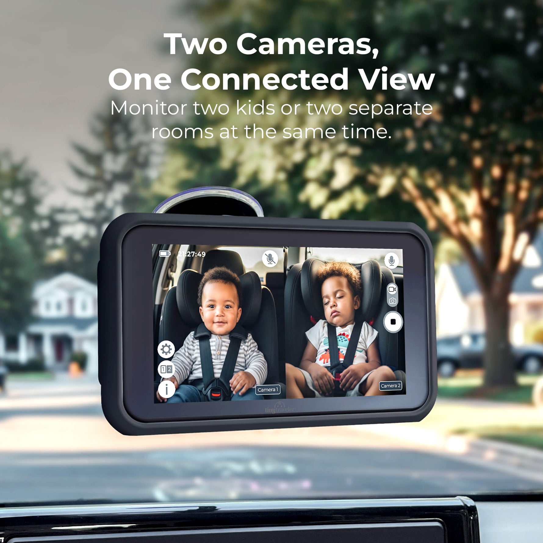 View two little ones at once with dynamic split-screen (add-on camera sold separately).
